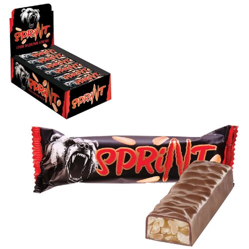 Шоколадный батончик "спринт", мягкая карамель и арахис в шоколадной глазури, 50 г, в шоубоксе, КЗ1389 — 18 шт.
