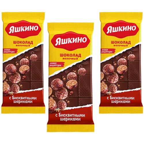 «Яшкино», шоколад молочный с бисквитными шариками, 3 упаковки по 85 г.