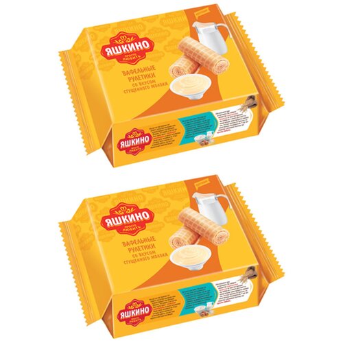 «Яшкино», рулетики вафельные со вкусом сгущённого молока, 2 упаковки по 160г