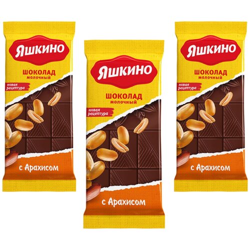 «Яшкино», шоколад молочный с арахисом, 3 упаковки по 90 г.