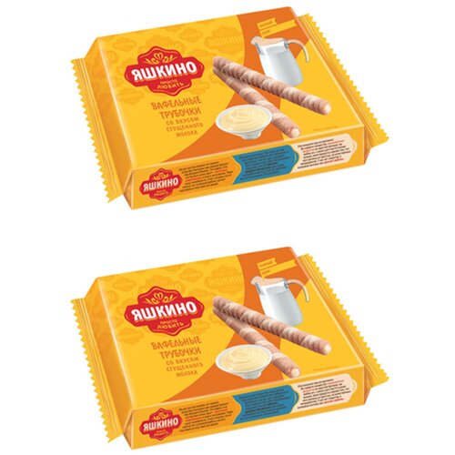 «Яшкино», трубочки вафельные со вкусом сгущённого молока, 2 упаковки по 190г