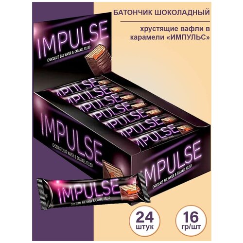 Вафли «Impulse» с мягкой карамелью в глазури, 24 шт по 16 г