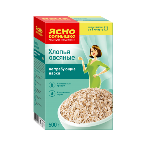 Хлопья овсяные не треб. варки кор. 500 г т/м Ясно солнышко