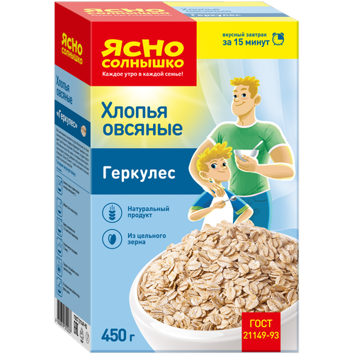 Хлопья овсяные геркулес ГОСТ кор. 450 г т/м Ясно солнышко