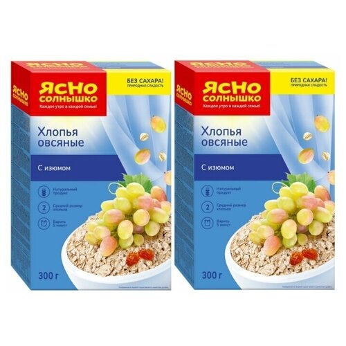 Овсяные хлопья с изюмом Ясно солнышко, 2 упаковки по 300 гр.
