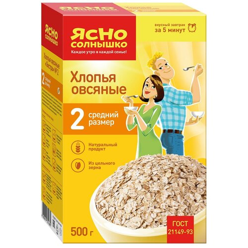 Хлопья овсяные Ясно солнышко, размер 2, 500 гр., 2 шт.