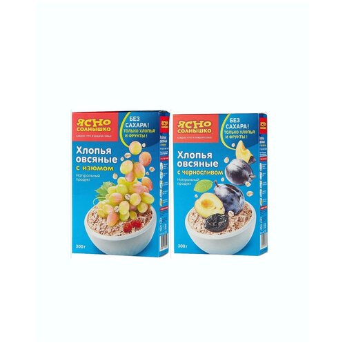 Хлопья овсяные с изюмом/черносливом Ясно cолнышко, 2 шт по 300 г