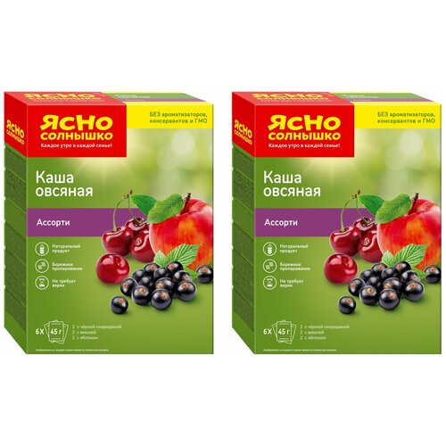 Ясно cолнышко Каша овсяная Ассорти №15: с черной смородиной, вишней, яблоком, порционная, 2 шт по 270гр