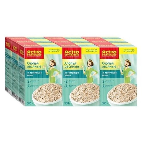Хлопья Ясно солнышко овсяные не треб.варки 500г x 9
