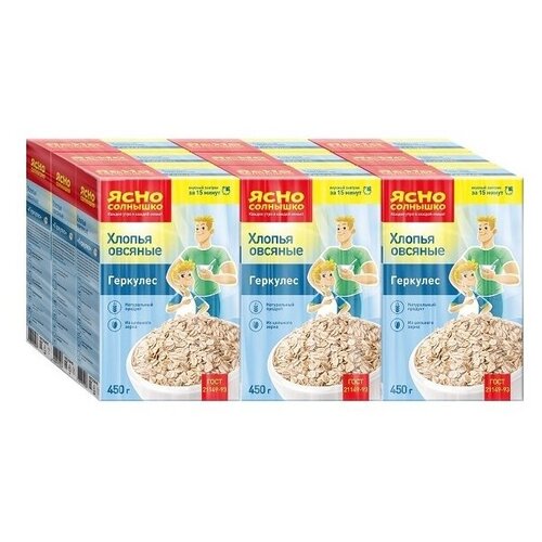 Хлопья Ясно солнышко овсяные Геркулес 450г х 9
