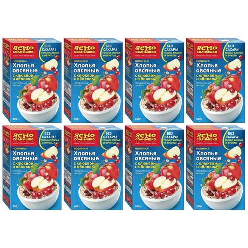 Хлопья Ясно солнышко овсяные с клюквой и яблоком 300г х 8