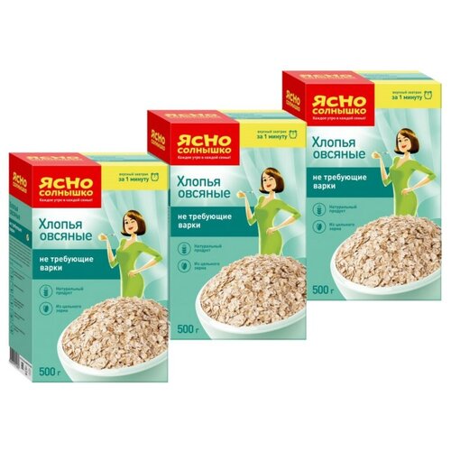 Ясно Солнышко Хлопья овсяные не требующие варки, 3 шт по 500гр