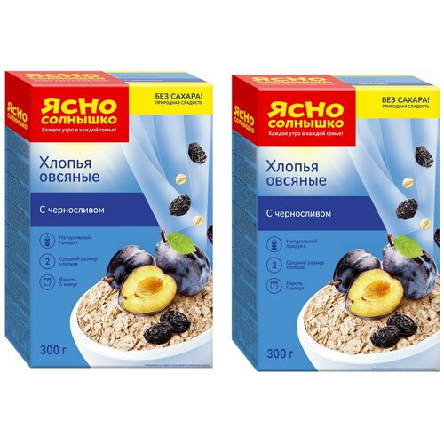 Ясно cолнышко Хлопья овсяные с черносливом, 2 шт по 300 г