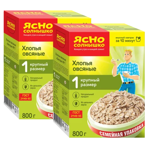 Ясно Солнышко Хлопья овсяные №1 крупные, 2шт. Х 800 г