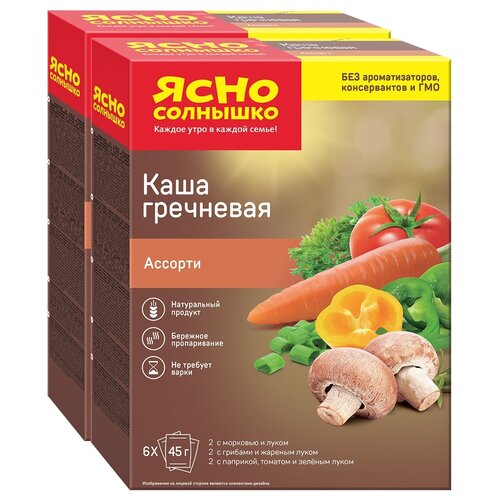 Ясно Солнышко Каша гречневая ассорти 6 пак. (с грибами и луком; морковью и луком; с паприкой,томатом и зеленым луком) 2шт. Х 270гр.