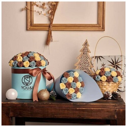 Шоколадный букет. 27 шоколадных роз you&i в корзинке. Бельгийский шоколад.
