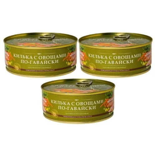 Килька балтийская с овощами в томатном соусе по-гавайски, За Родину 3 банки по 240 грамм