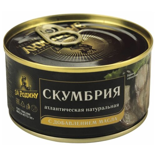Скумбрия атлантическая За Родину натуральная с добавлением масла 185 г 4 шт