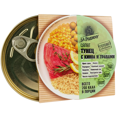 Салат из тунца полосатого филе с киноа и травами За Родину 160гр ключ
