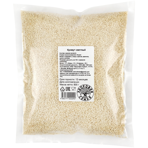 Кунжут светлый (белый) Здоровая Семья семена сырые, 500 г