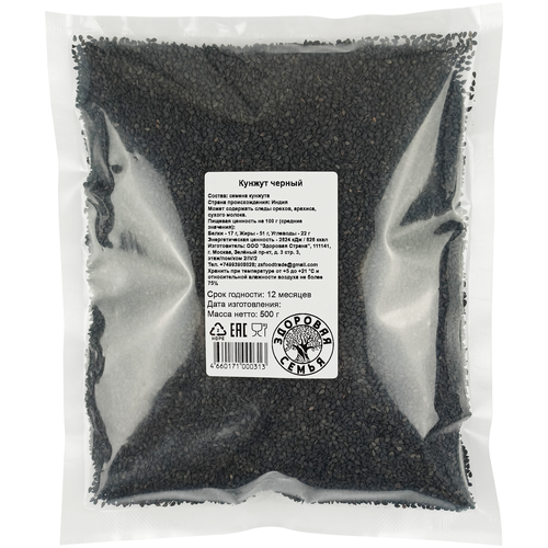 Кунжут черный Здоровая Семья семена сырые, пищевые, для проращивания, 500 г