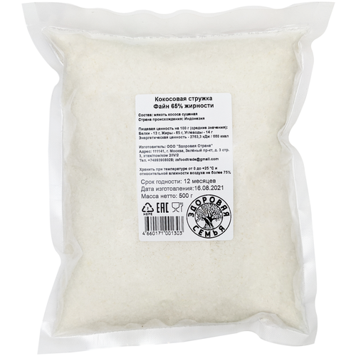 Кокосовая стружка Здоровая Семья Файн 65% жирности, 500 г