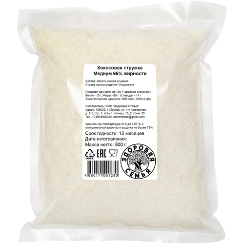 Кокосовая стружка Здоровая Семья Медиум 65% жирности, 500 г
