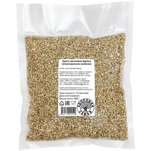 Крупа гречневая непропаренная (Зеленая гречка) Здоровая Страна, (для проращивания), 500 г