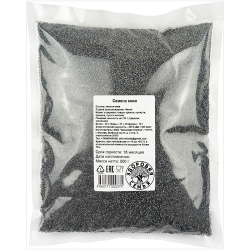 Мак пищевой семена Здоровая Семья, 500 г