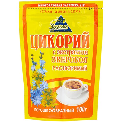 Цикорий Здоровье растворимый порошкообразный с экстрактом Зверобоя, 100 г, ZIP застежка