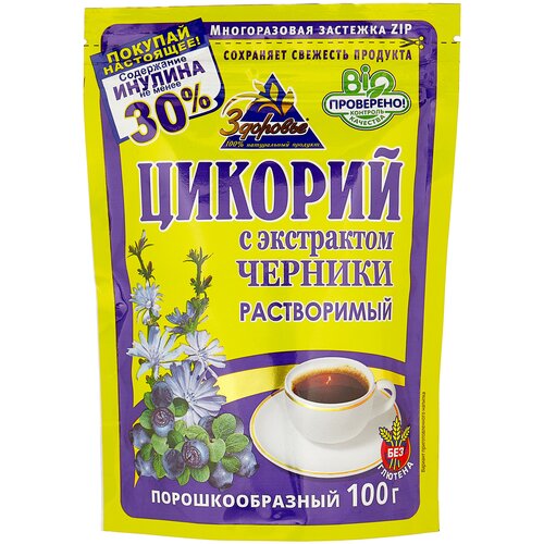 Цикорий Здоровье растворимый порошкообразный с экстрактом Черники, 100 г, ZIP застежка