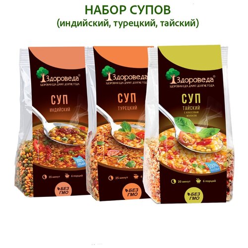 Набор супов Здороведа, 3 шт. по 250 гр. (турецкий, индийский, тайский)