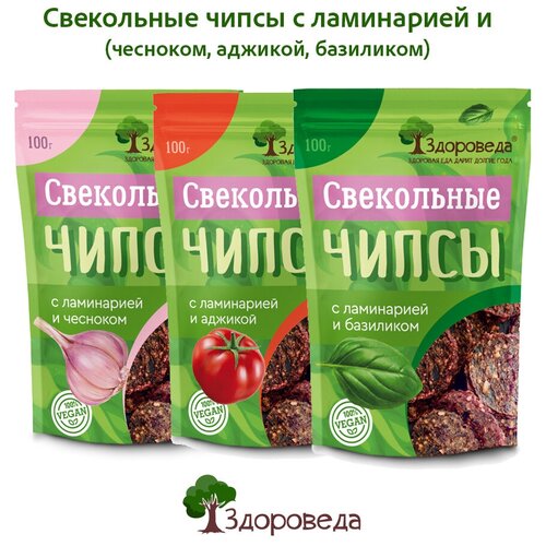 Набор свекольных чипсов Здороведа с ламинарией (чеснок, аджика, базилик) 3 шт. по 100 гр.
