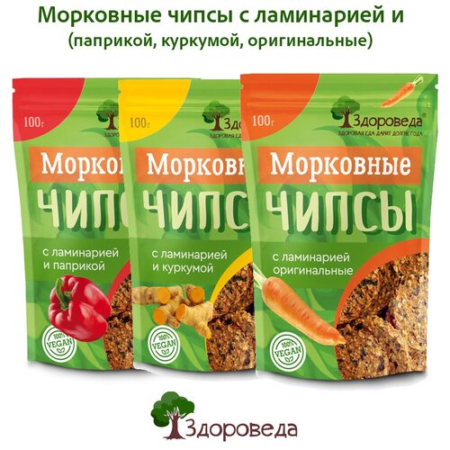 Набор морковных чипсов Здороведа (паприка, куркума, оригинальные), 3 шт. по 100 гр.