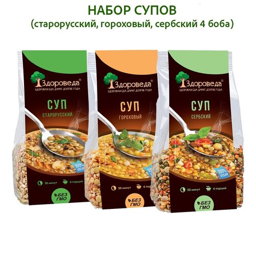 Набор супов Здороведа, 3 шт. по 250 гр. (старорусский, гороховый, сербский)