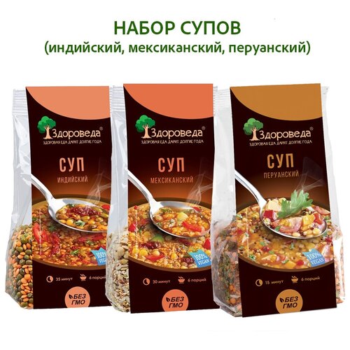 Набор супов Здороведа, 3 шт. по 250 гр. (индийский, мексиканский, перуанский)