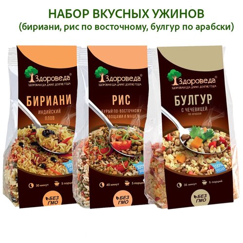 Набор ужинов Здороведа, 3 шт. по 250 гр. (бириани, рис по восточному, булгур по арабски)