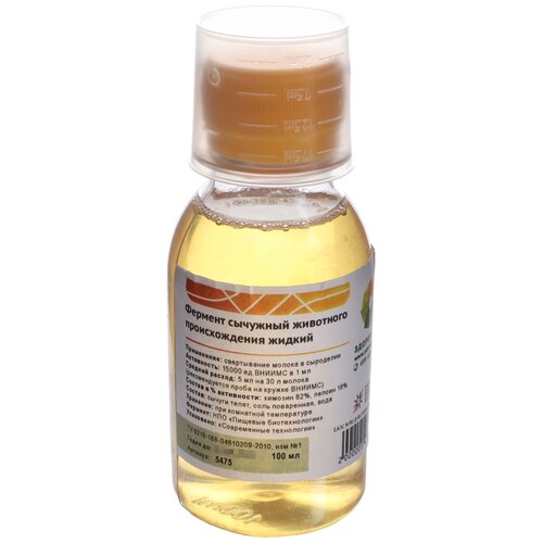 Натуральный сычужный фермент для сыра и творога, 15000 ед вниимс, флакон 100 мл с мерным стаканчиком (Здоровеево)
