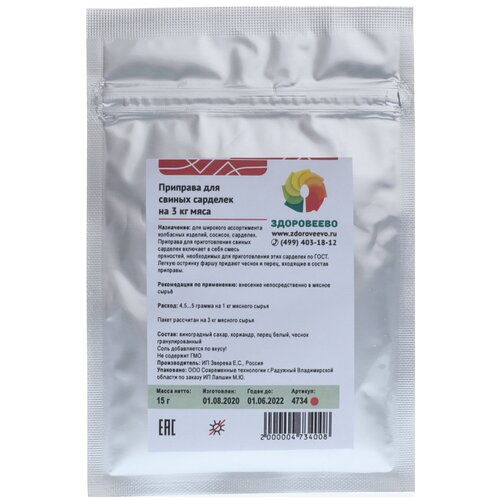 Приправа для Свиных сарделек, на 3 кг (Здоровеево)