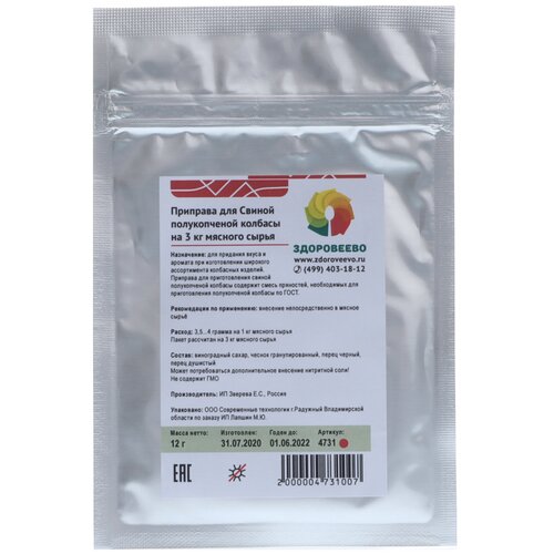 Приправа для полукопченой Свиной колбасы , на 3 кг (Здоровеево)