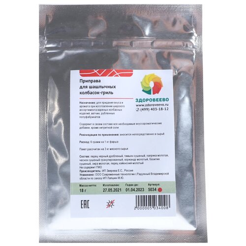 Приправа для шашлычных колбасок-гриль, на 3 кг (Здоровеево)