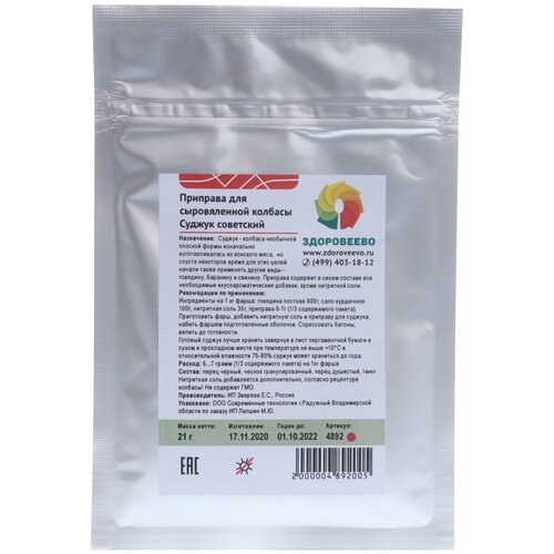 Приправа для сыровяленой колбасы Суджук советский, на 3кг (Здоровеево)