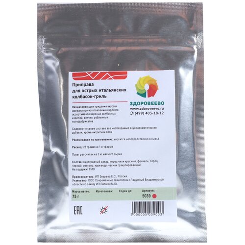 Приправа для острых итальянских колбасок-гриль, на 3 кг (Здоровеево)