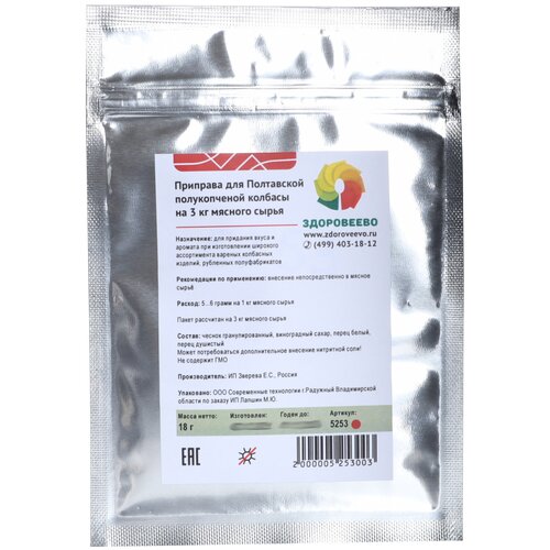 Приправа для полукопченой колбасы Полтавская, на 3 кг (Здоровеево)