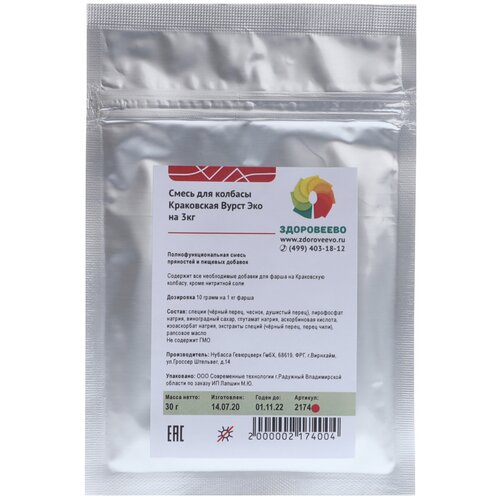 Смесь для колбасы Краковская Вурст Эко 30г, на 3кг
