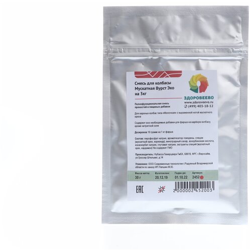 Смесь пряностей для колбасы Мускатная Вурст Эко 30г, на 3кг