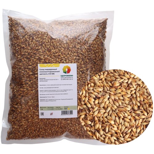Солод ячменный Карамельный пивоваренный, цветность 150 EBC, 1 кг
