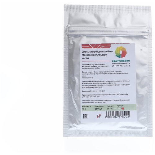 Смесь специй для колбасы Московская Стандарт 15г, на 3кг