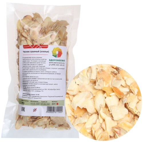 Чеснок сушёный хлопья, пакет 100 г