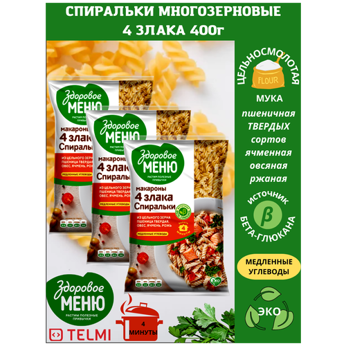 Набор Макаронные изделия Здоровое меню Спиральки Многозерновые 400г, группа А, высший сорт. 3шт.